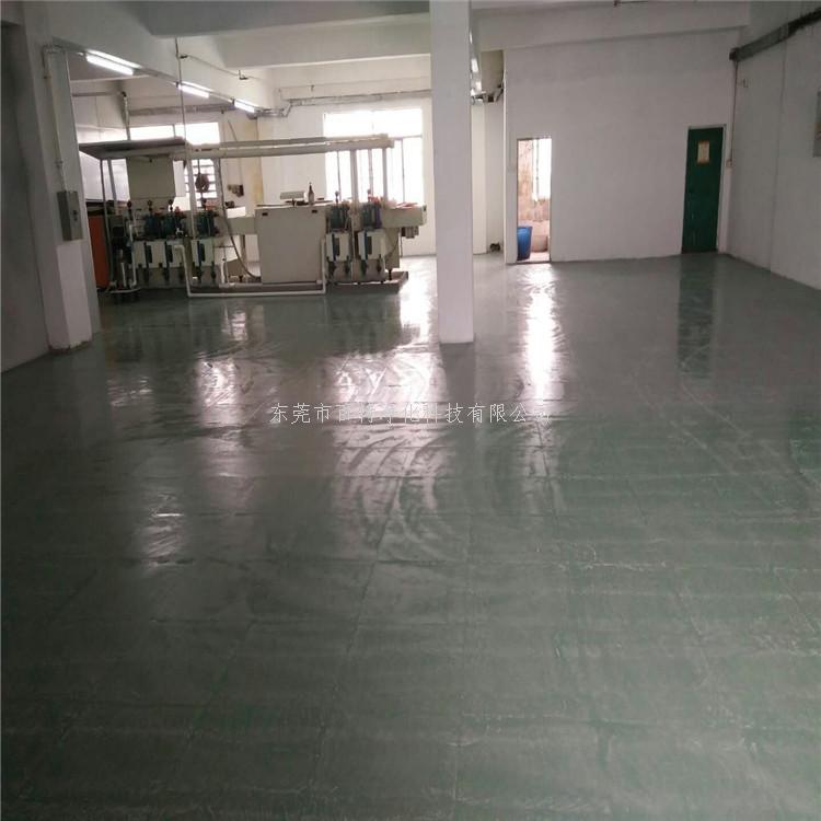 東莞市謝崗鎮工地(dì),環氧樹(shù)脂薄塗地板施工中:
