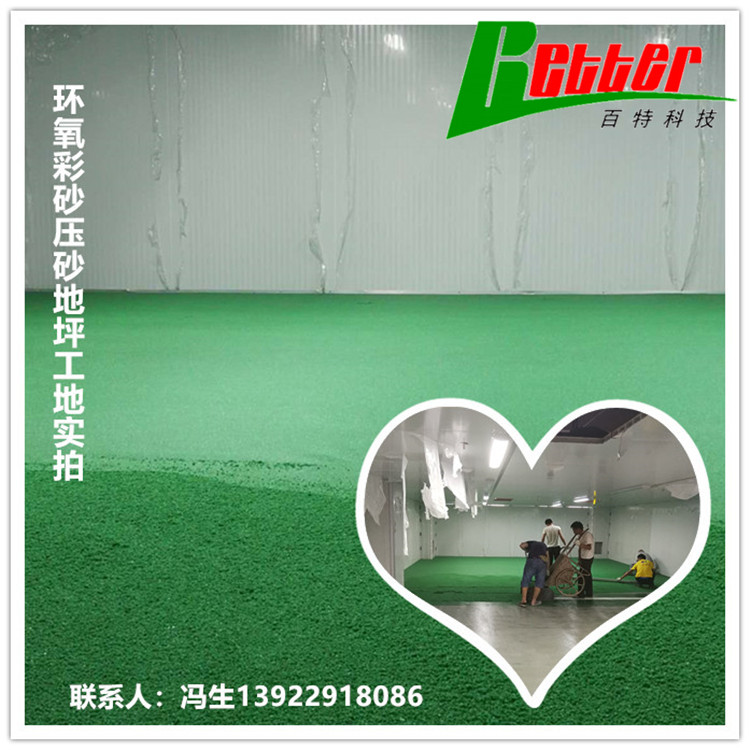 壓砂型:在底漆(4m2/1)還是潮濕狀態下鋪設彩砂砂漿層(手工(gōng)12.5/1,機械15/1,厚度2mm以上),壓(yā)實整平,形成整體無縫的環氧彩砂層,塗飾透明麵層(2.5-4m2/1)。