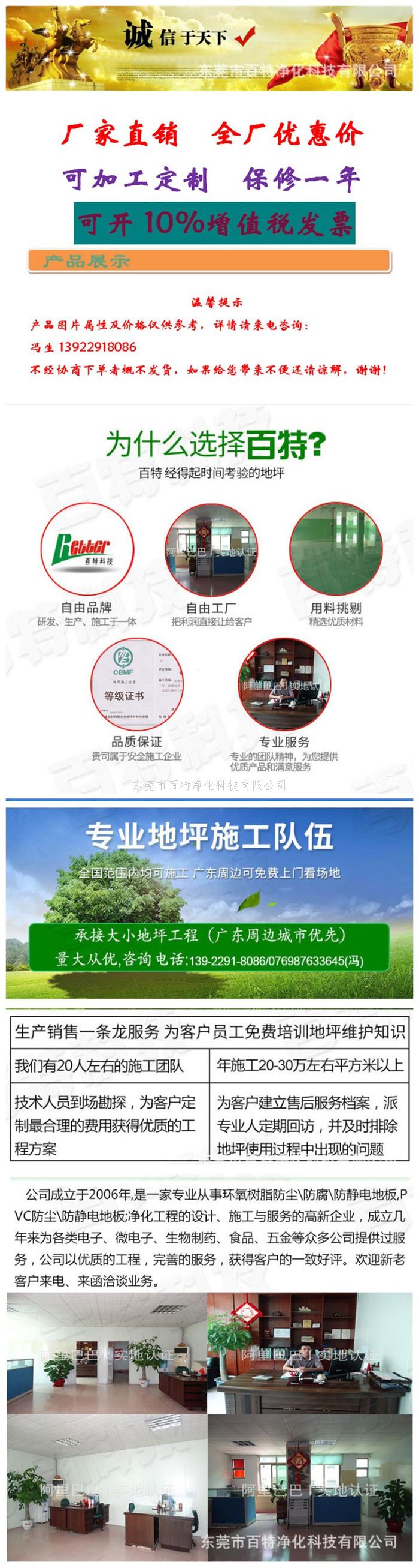 6.環氧麵漆:溶劑型環氧麵漆或止(zhǐ)滑麵(miàn)漆二道,完工後整體地麵光亮潔淨,顏色均一,無(wú)空鼓 ;